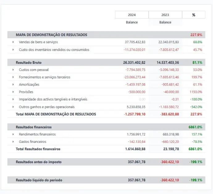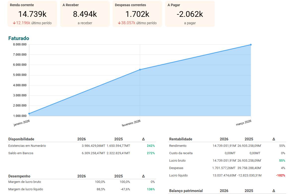 Balanço patrimonial, demonstração de resultados e fluxo de caixa em tempo real.