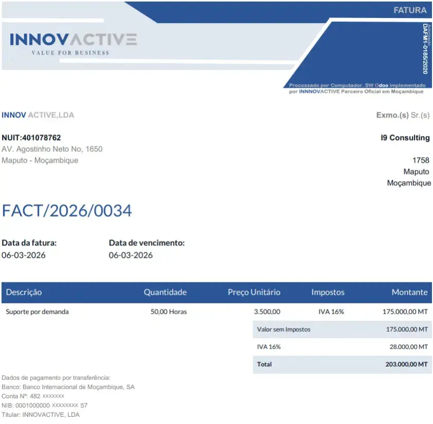 Faturação autorizada pela at